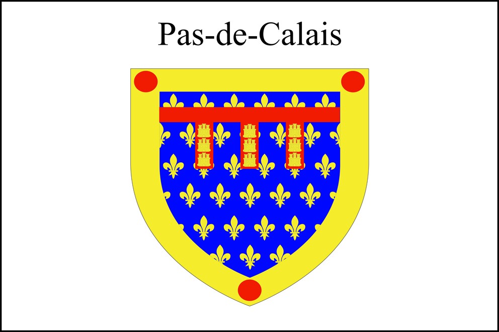 Ce drapeau pas-de-Calaisiens a les couleurs suivantes : bleu, rouge et or et se caractérise par un azur semé de fleurs de lys d’or et brisé en chef d’un lambel de gueules de trois chargés chacun de trois petits châteaux aussi d’or rangés en pal, à la bordure du même chargée de trois tourteaux de gueules.