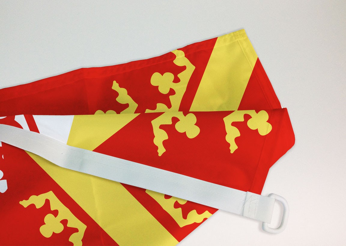 Le drapeau alsacien a un assemblage appelé « pavillon » avec une sangle avec deux anneaux en plastique. Il est destiné à être monté au sommet d’un mât.