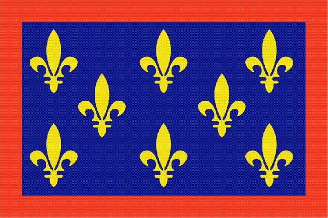 Ce drapeau mainiot a les couleurs suivantes : bleu, or, blanc et rouge. Il se caractérise notamment par des fleurs de lys or sur fond bleu bordées de rouge.