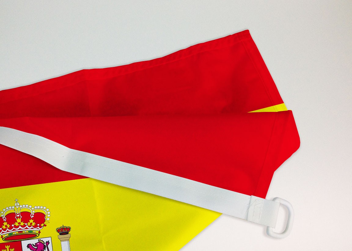 Bien qu’il puisse directement être utilisé dedans, c’est un article de haute qualité professionnelle pour être utilisé à l’extérieur. Ce tissu et l’encre résistent aux intempéries et aux pollutions, le drapeau du Royaume d’Espagne reste pourtant un produit d’usure que l’on doit renouveler régulièrement. La fréquence de changement va dépendre du temps, et surtout la vitesse du vent. Varinard recommande de baisser le pavillon du mât à partir de 8-9 Beaufort.