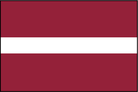 Ce drapeau letton est composé des couleurs suivantes : rouge grenat, blanc et rouge grenat et se distingue par ses trois bandes verticales.