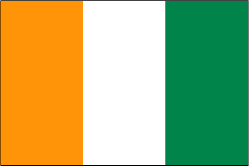 Ce drapeau ivoirien est composé des couleurs suivantes : orange, jaune et blanc. Il se caractérise notamment par bandes tricolore verticales orange, blanche et verte de largeurs égales.