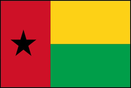 Ce drapeau bissau-guinéen a les couleurs suivantes : vert jaune rouge et noir et se distingue notamment par bandes rouge (verticale), jaune et verte (horizontales) avec une étoile noire à cinq branches dans la bande rouge.