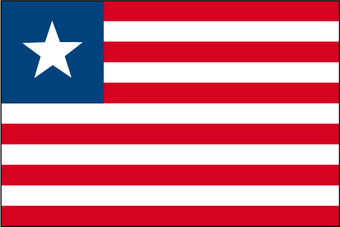 Ce drapeau libérien a les couleurs suivantes : bleu blanc et rouge et est notamment inspiré du drapeau des Etats-Unis à la différence qu’il n’a qu’une étoile au canton.