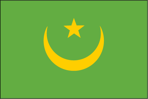Le drapeau mauritanien a les couleurs suivantes : jaune et vert. Il se caractérise notamment par une demi-lune surmontée d’une étoile à 5 branches sur fond vert.