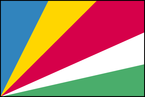 Le drapeau Seychellois a les couleurs suivantes : bleu jaune rouge blanc et vert et se distingue par 5 bandes obliques .