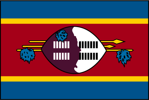 Le drapeau de la Swaziland est composé des couleurs suivantes : bleu jaune rouge et se distingue par cinq bandes horizontales bleue (haut), jaune, rouge, jaune et bleue.