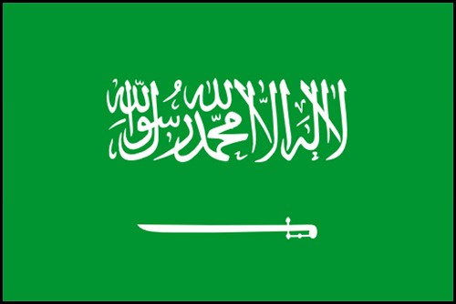 Le drapeau saoudien a les couleurs suivantes : vert et blanc et se distingue par un fond vert, couleur de l’Islam. Le drapeau porte, en blanc, un sabre et la chahada.
