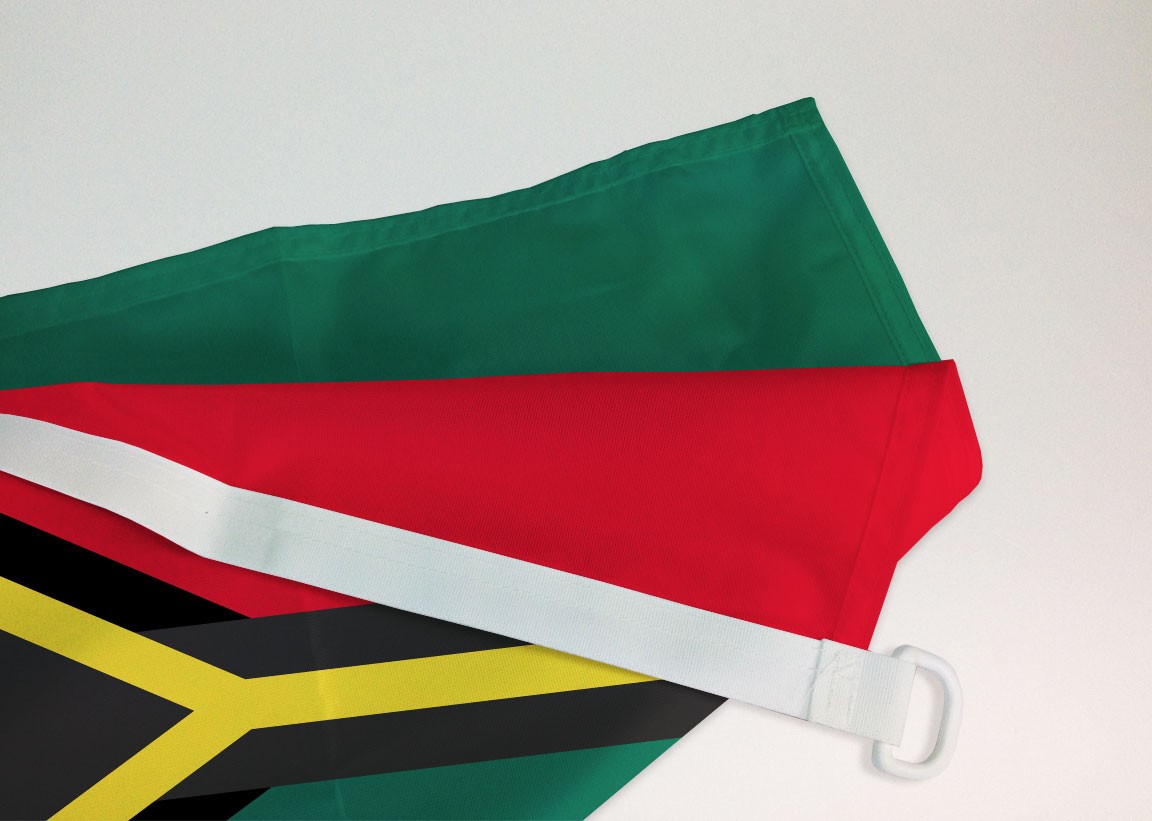 Ce drapeau vanuatais a un assemblage parfois appelé « pavillon » avec une sangle avec une paire d’anneaux de plastique. Il peut être monté au sommet d’un mât.