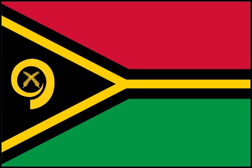 Le drapeau vanuatais a les couleurs suivantes : rouge, noir, jaune et vert et se distingue par 3 bandes verticales avec un Y couché.