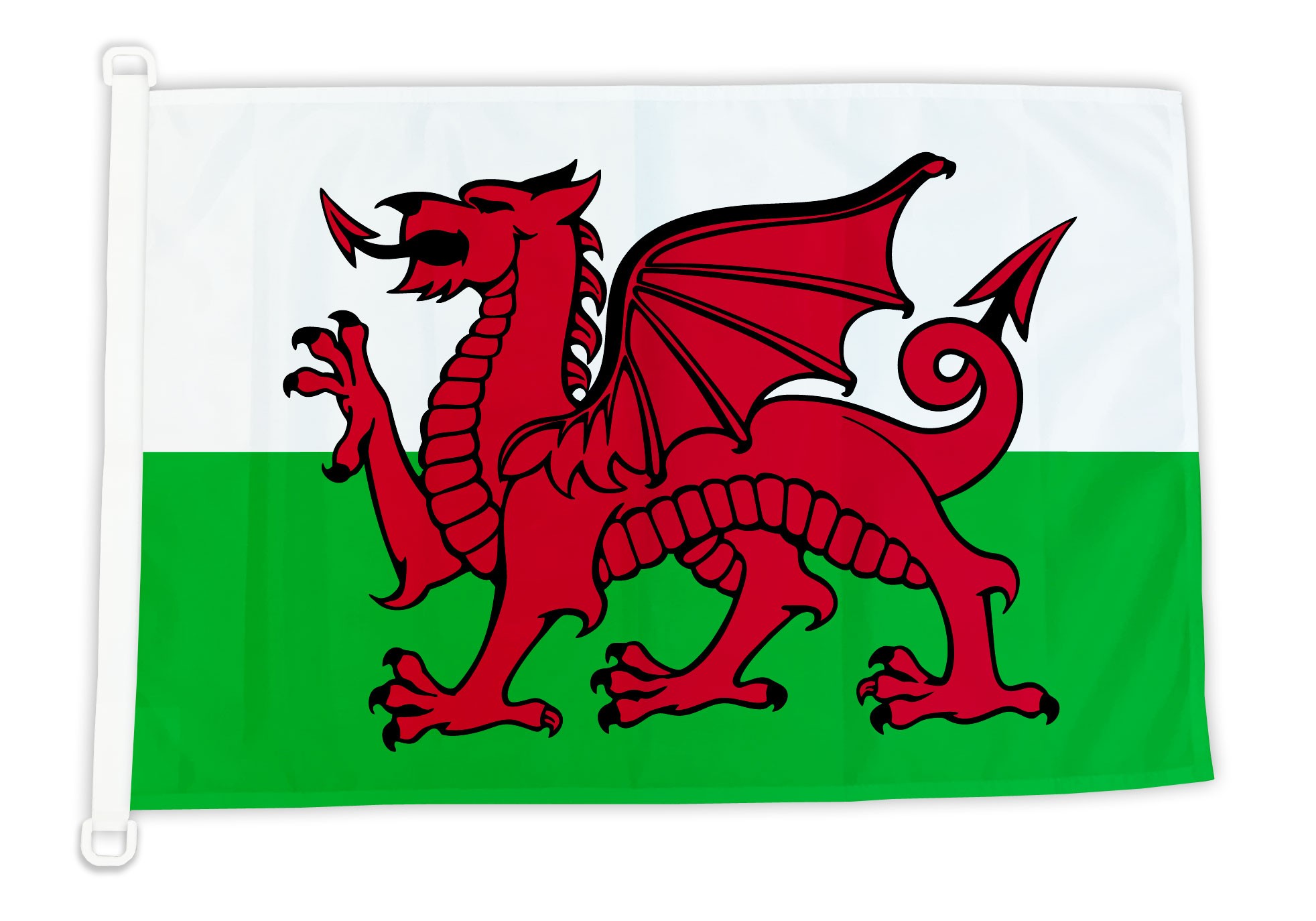 Le drapeau gallois est composé des couleurs suivantes : rouge blanc et vert. Il se caractérise par son dragon sur fond blanc et vert.